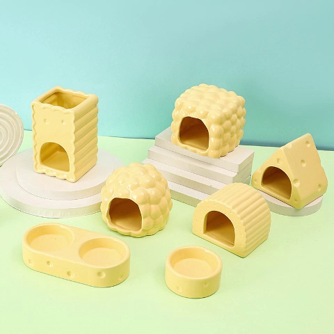 Squirrel ceramic nest hiding house, golden hamster cream series cheese ceramic bowl, feeding bowl, water bottle stand, nest