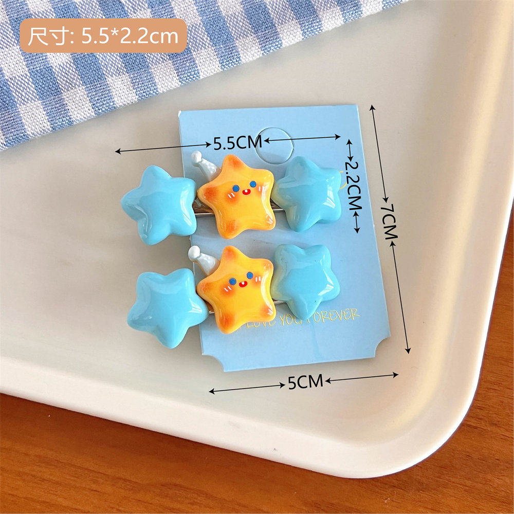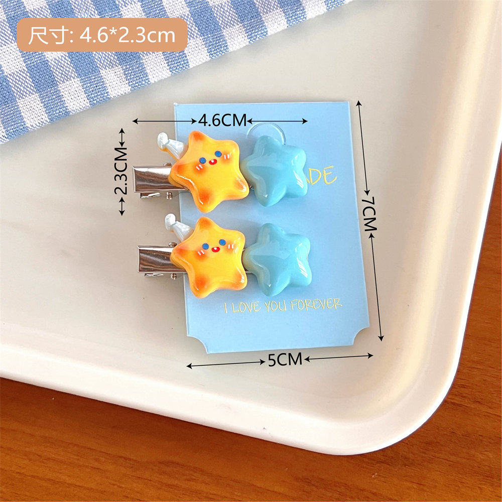 14# yellow blue stars barrettes (a pair)