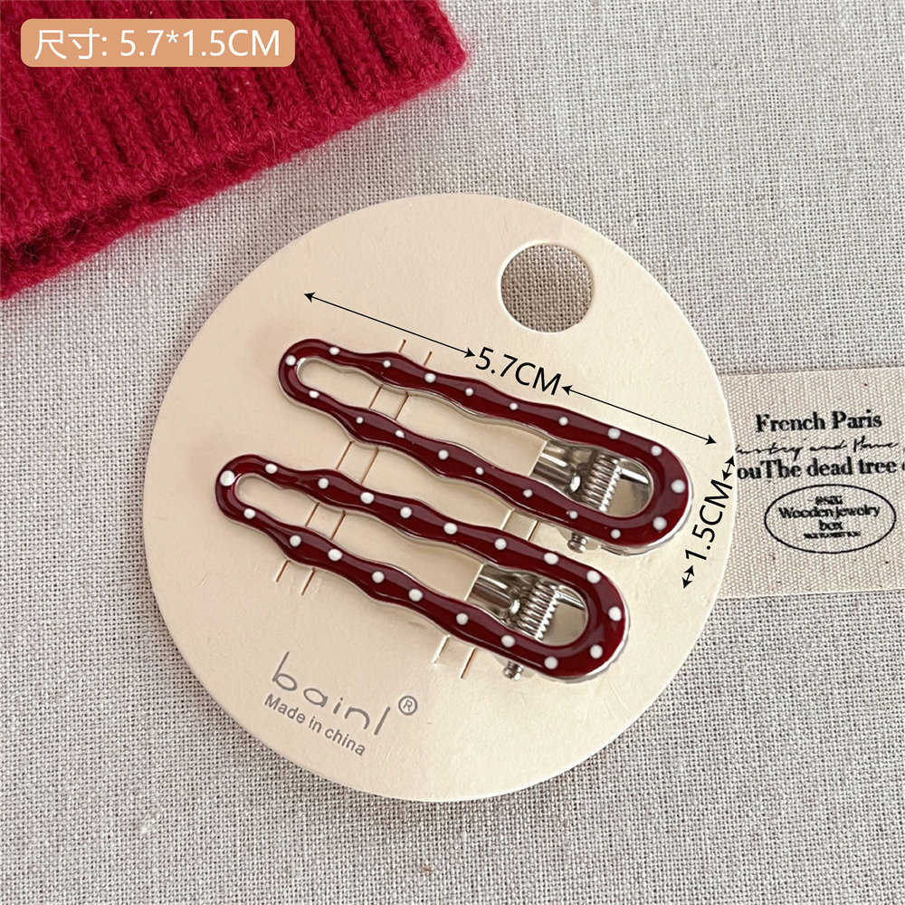 6# wine red round beads polka dot duckbill clip