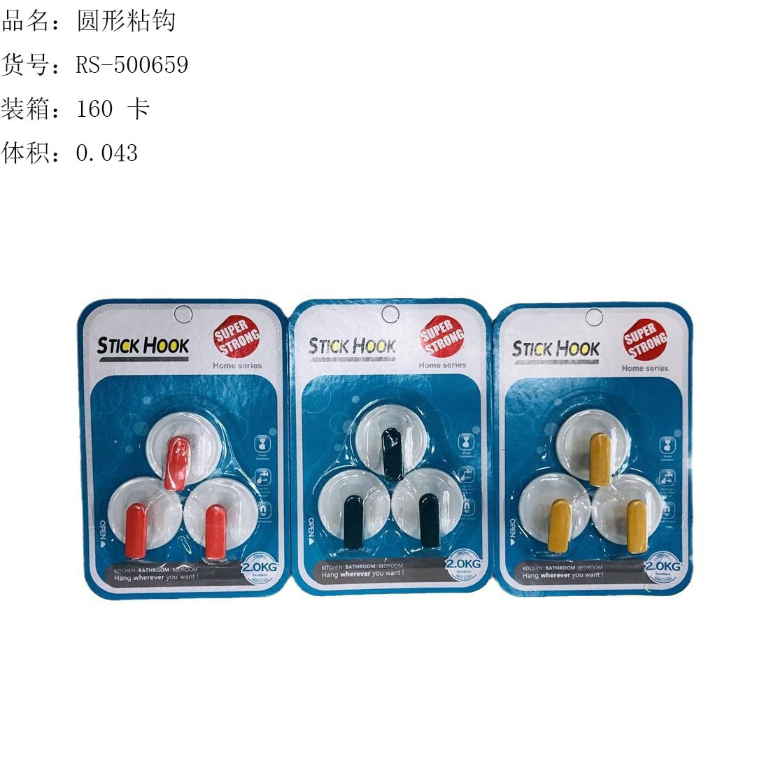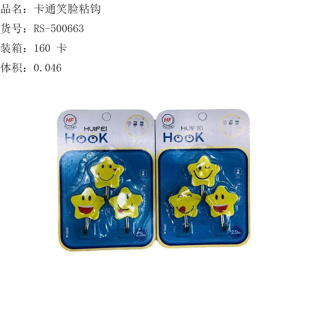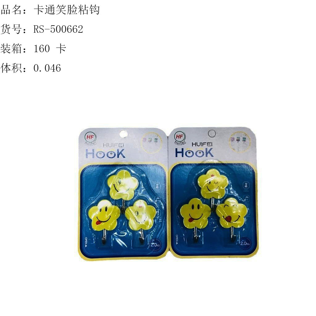 ITEM NO.【Product Model Number】: RS-500564 NAME【Product Name】: Cloud Hook (3-pack) QTY【Quantity】:160 cards "CBM【纸箱体积】:0.033 Material【Product Material】: PP+Adhesive Color: Mixed Weight【Product Weight】:27 grams per card Packaging【包装方式】:3个一吸卡" "Packaging【包装方式】:3个一吸卡 "W.G【Gross Weight of a Full Container】:5.5kilogram N.G【Gross Weight of the Whole Case】: 4.3 kilograms SIZE【Product Size】: Length 15.5* Width 10.3 cm / Cardboard Size Product Size: Length 4.3cm * Width 3.5cm * Height 2.0cm