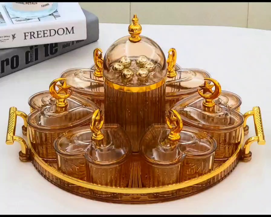 dried fruit dish snack dish round transparent dessert compartment tray household fruit plate with plastic cover nordic light luxury fruit tray