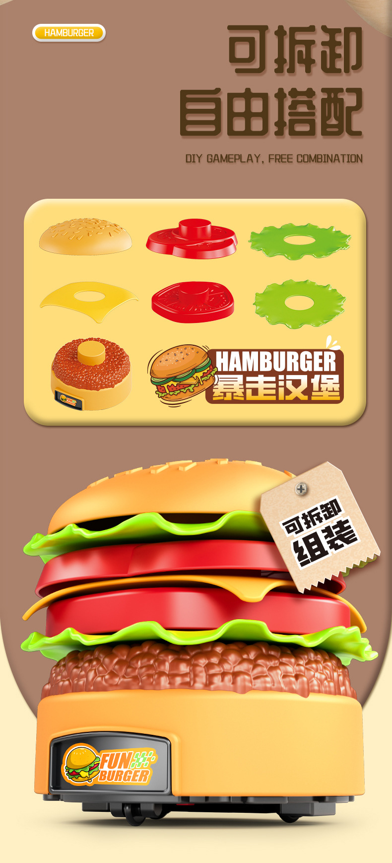 [hamburger car] creative assembly remote control car-chicken nugget remote control