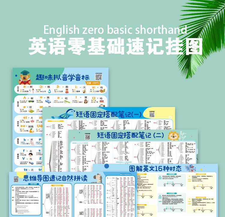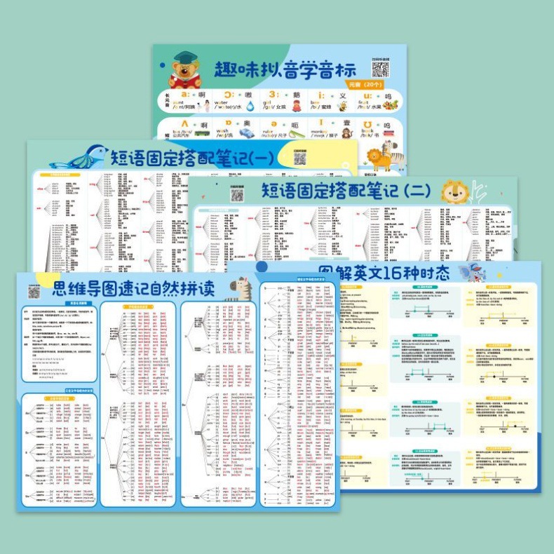 1 set [5 zero basic english wall charts]]