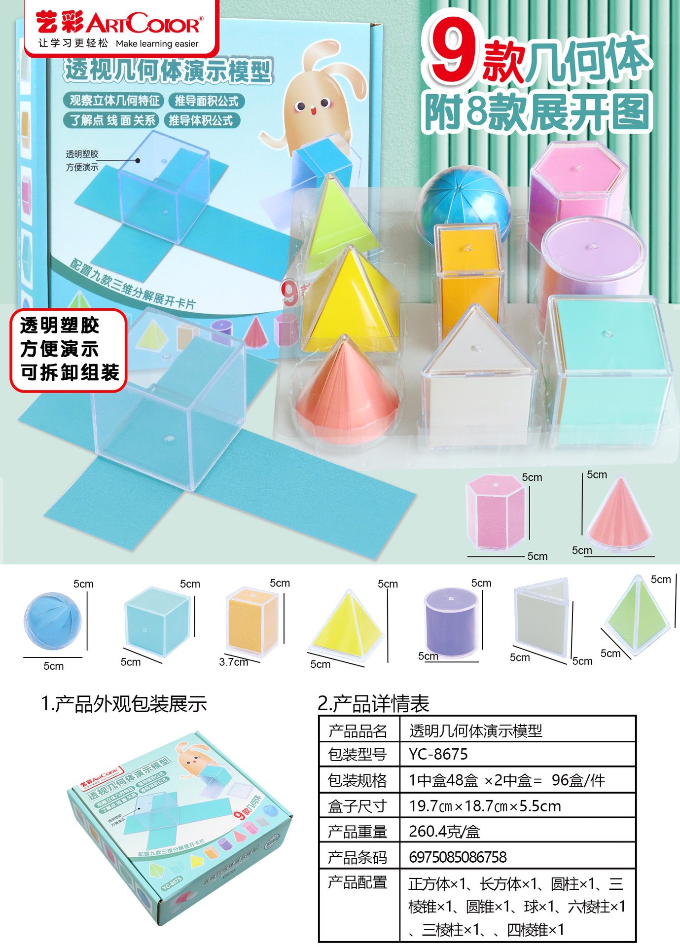 9 large transparent solid geometry (with expansion drawing)