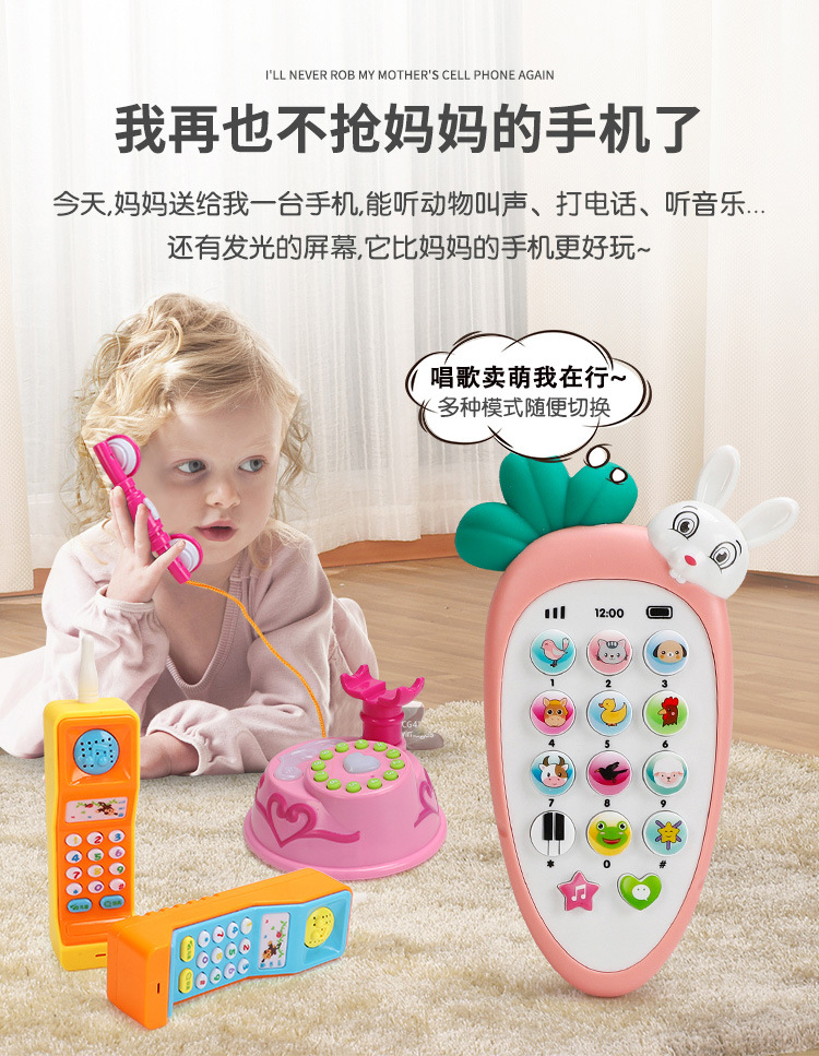 simulation children's music phone toy baby enlightenment rechargeable baby early education 01-3 years old press cartoon mobile phone