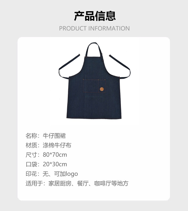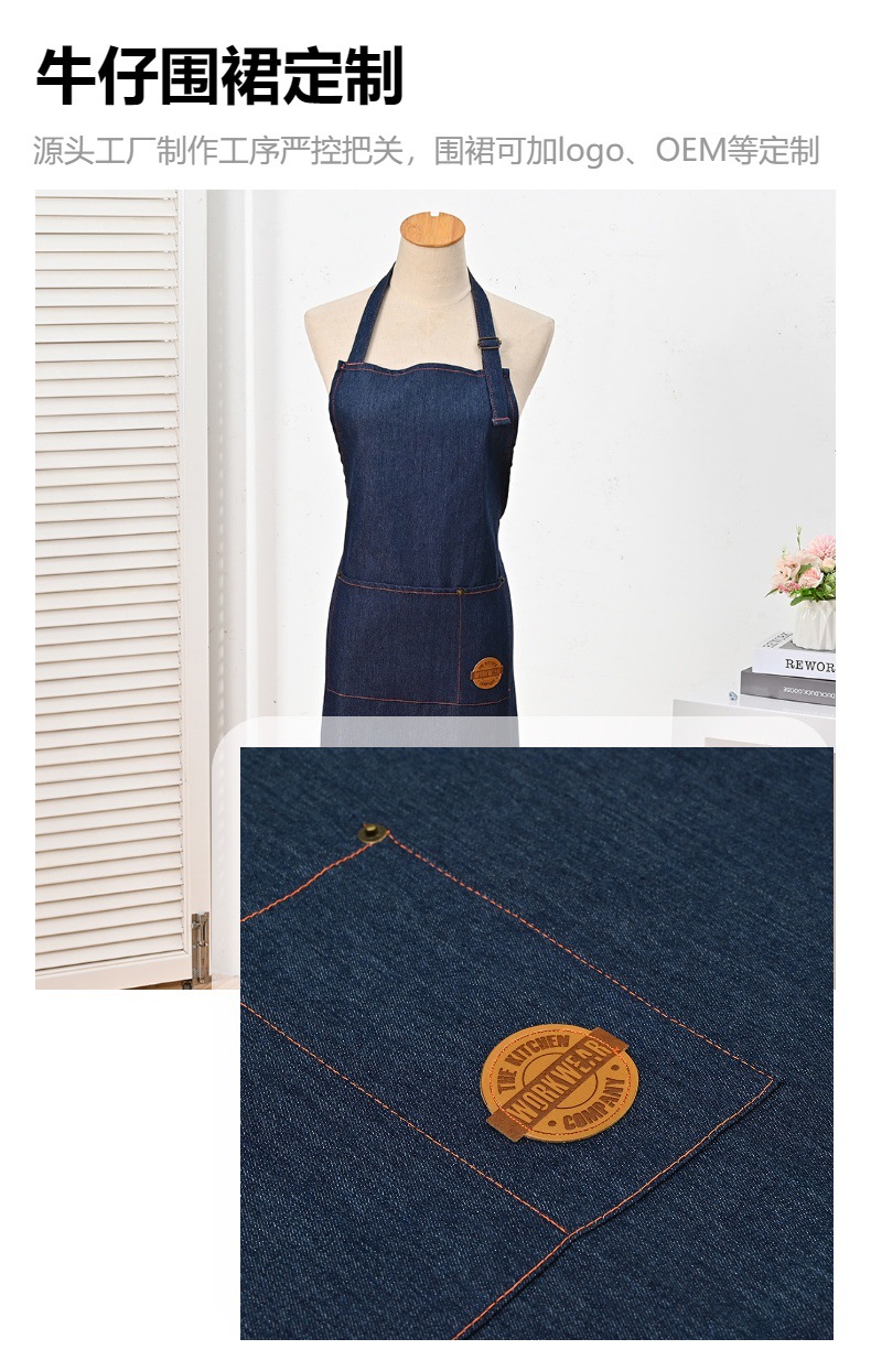 factory direct supply kitchen wear-resistant jean apron korean style sleeveless halter apron restaurant work apron logo can be added