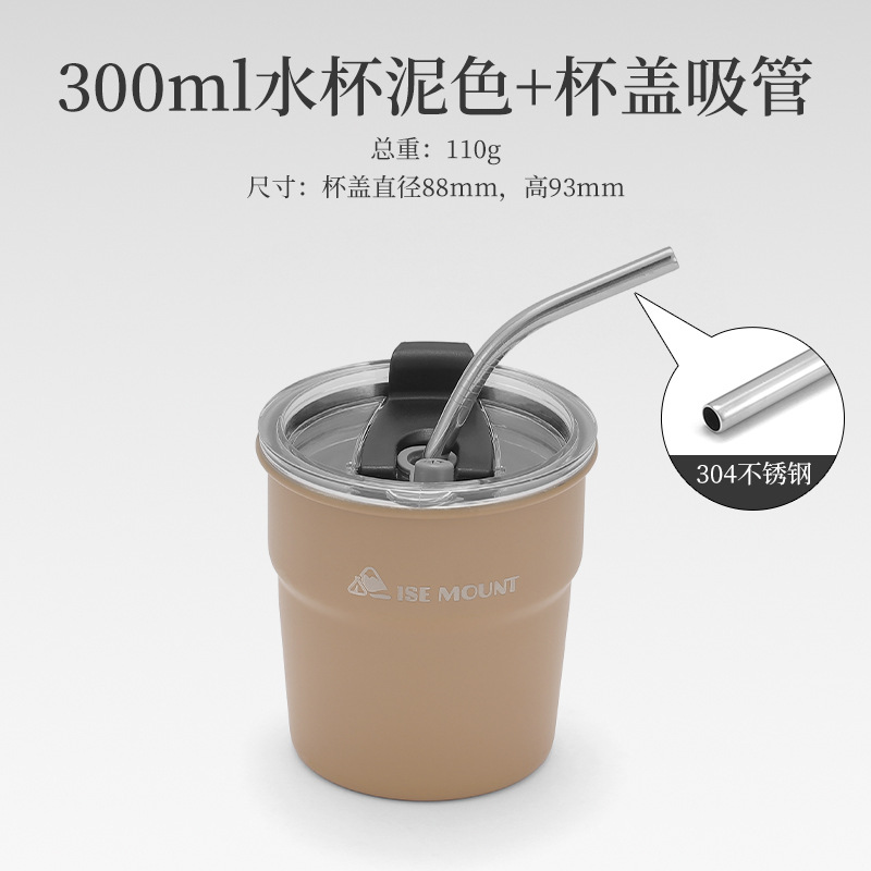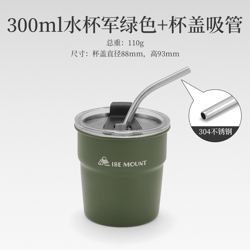 army green cup + cup lid straw