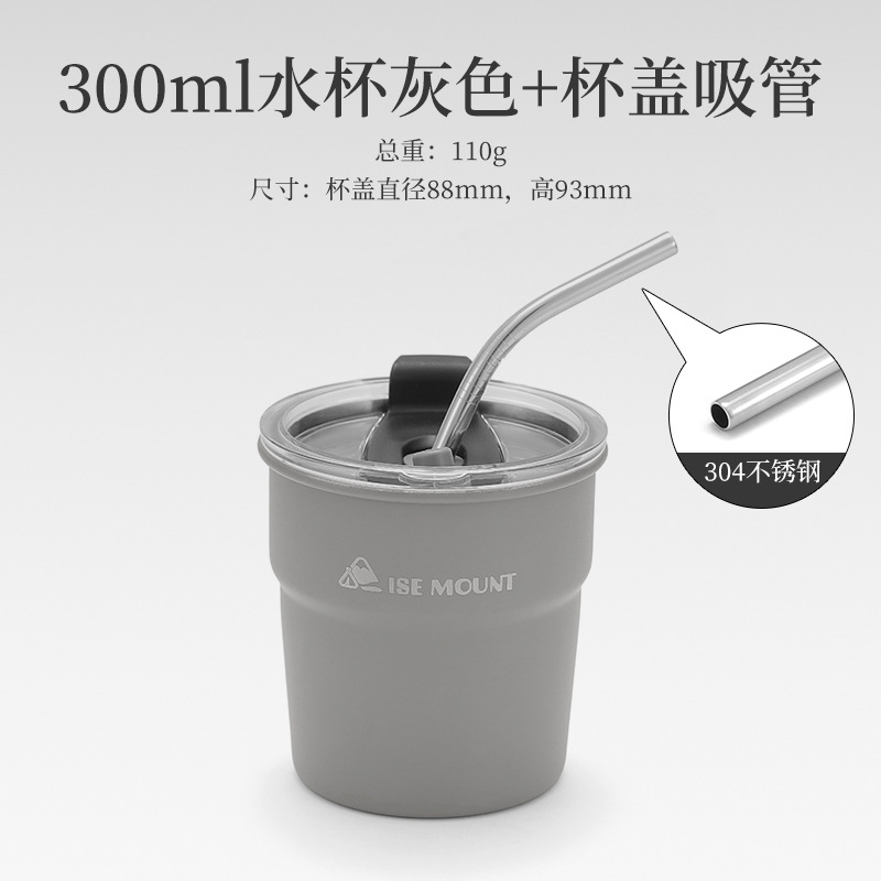 gray cup + cup lid straw