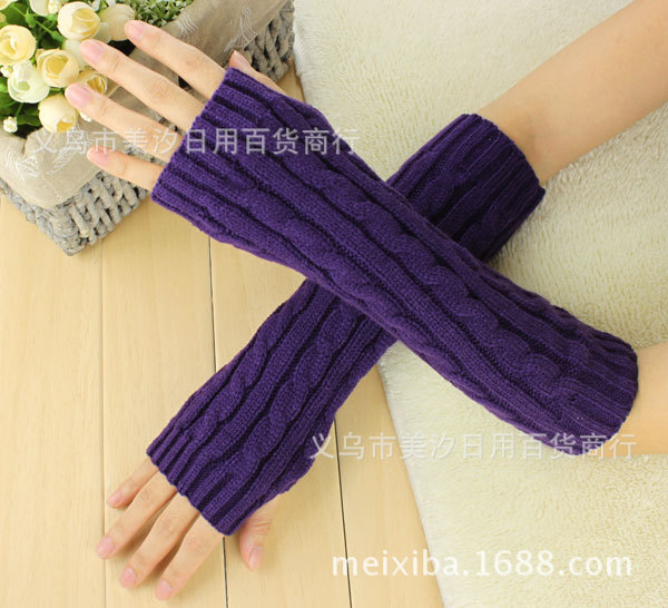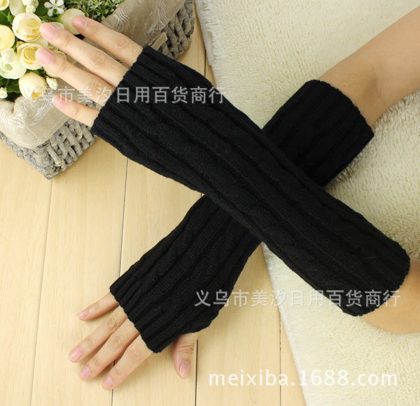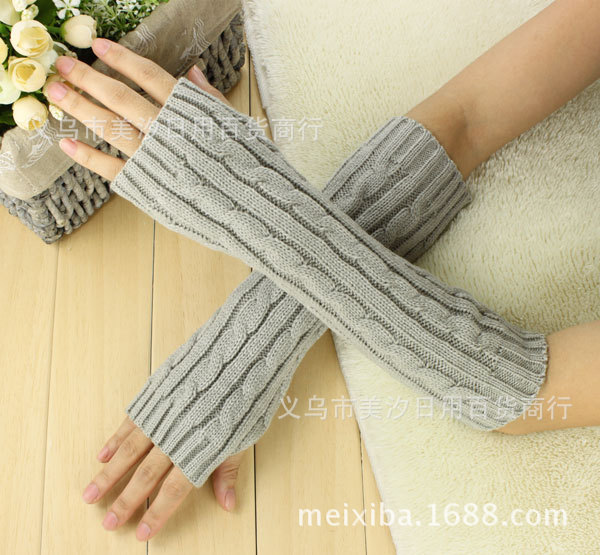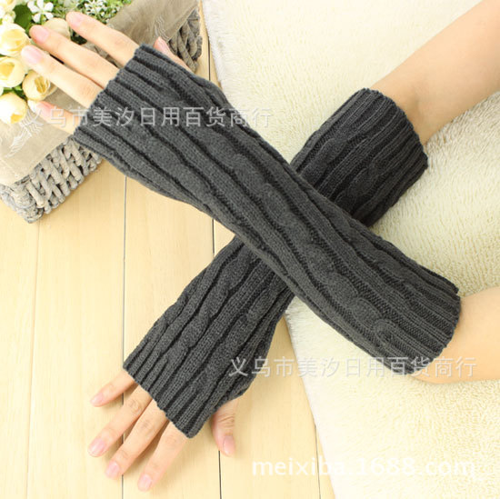 Product Name: New Winter Long-Sleeve Twisted Knit Gloves with Half-Finger Design, Warm Knitted Woolen Gloves for Men and Women with Open Fingers, Wholesale