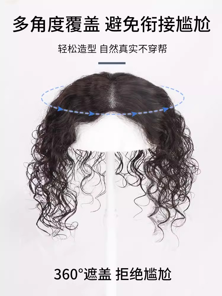 swiss net curly hair wig set real hair cover gray hair fluffy hair increase natural seamless long-lasting hot roll hair supplementing piece women