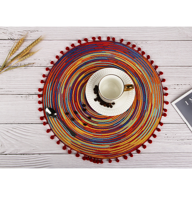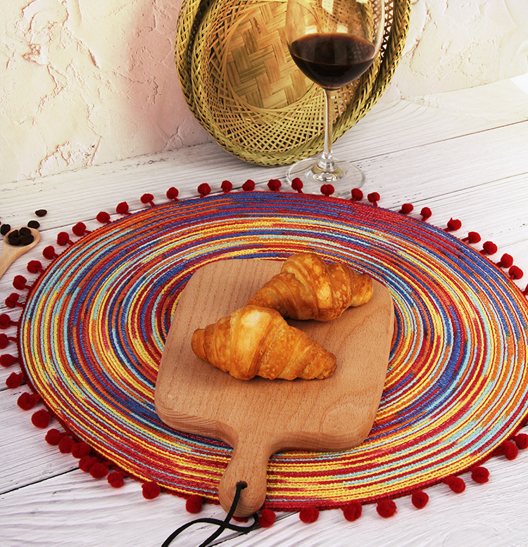 customized home section dyed dacron ball placemat creative weaving western-style placemat oil painting style