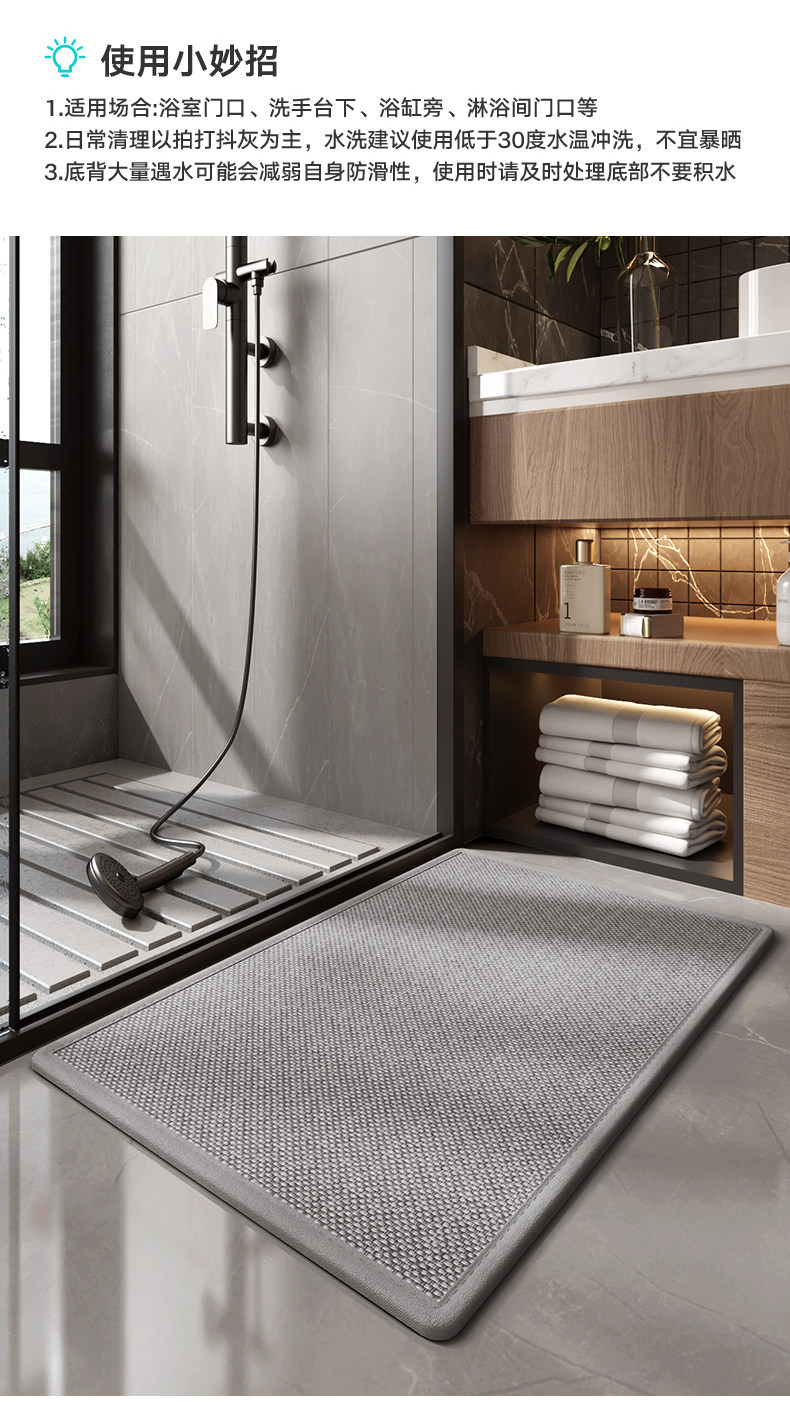 light luxury floor mat bathroom absorbent floor mat toilet doorway entrance thickening carpet bathroom dry wet separation non-slip mat