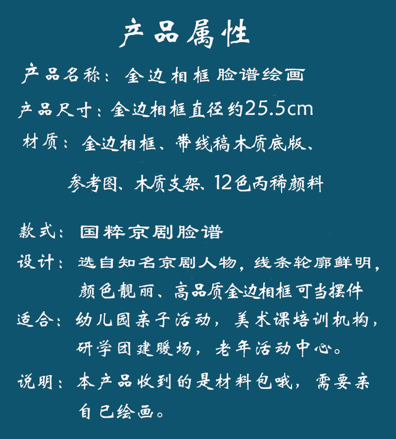 facial makeup jiang wei (three-dimensional edging photo frame + bracket + reference picture +12-color acrylic pigment)