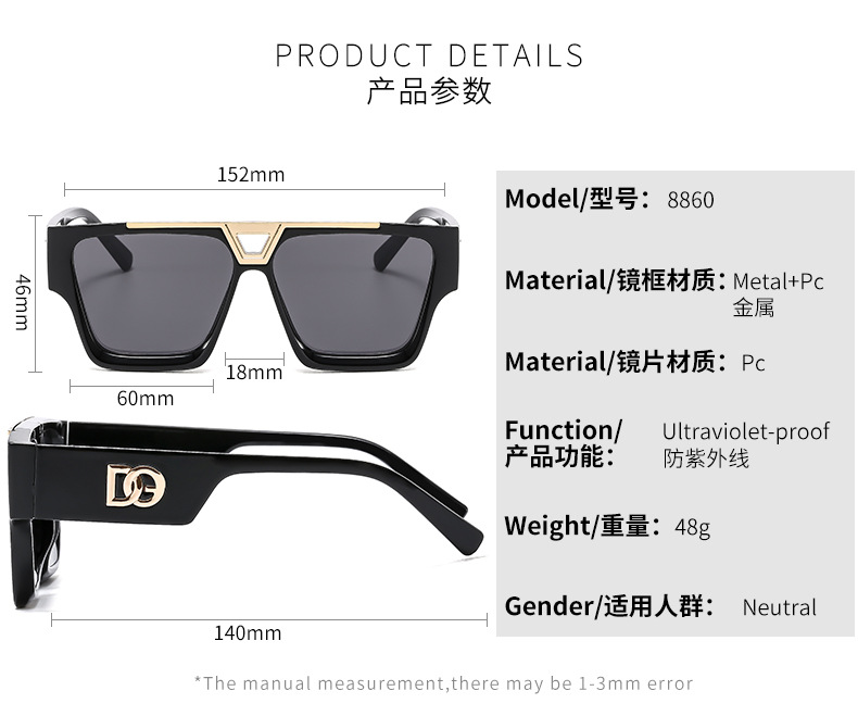 2024 new sunglasses fashion large rim wide leg men's women's sunglasses trapezoidal letter d trendy cool glasses star style