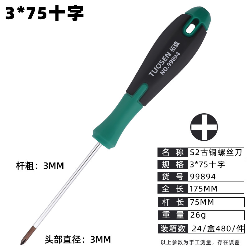 99894,s2 bronze 3*75 cross screwdriver, 24/box 480/piece, 0.026kg