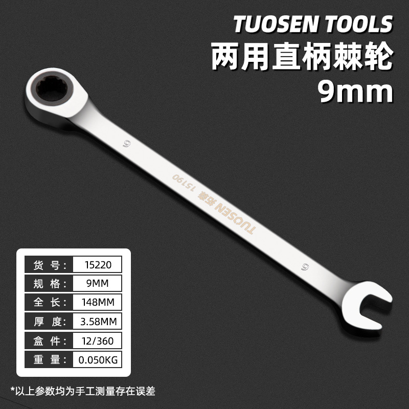 15220,9mm straight handle dual-purpose ratchet wheel, 12/box 360/piece, 0.05*22