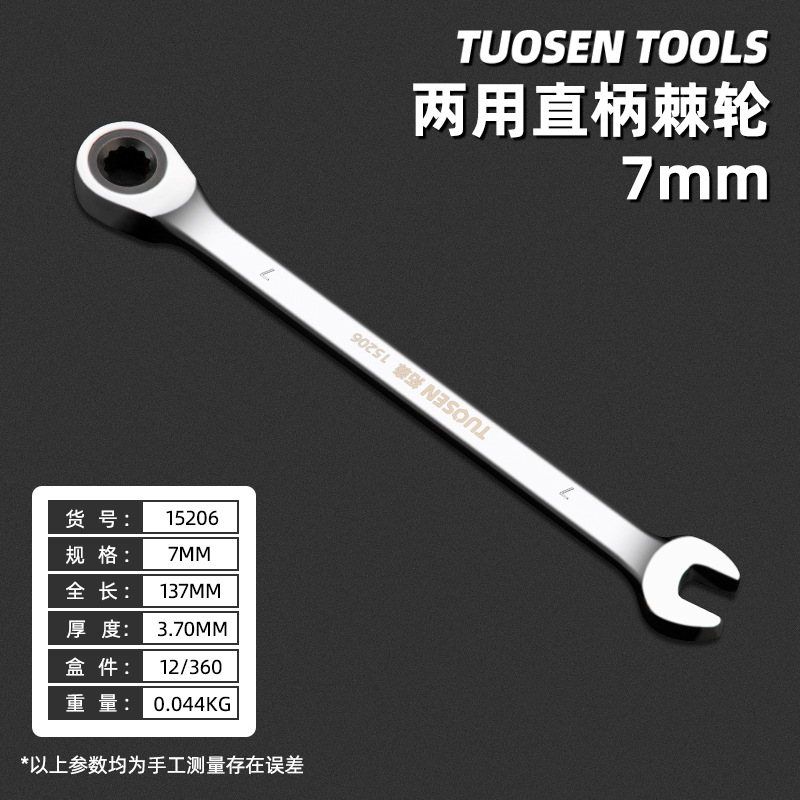 15206,7mm straight handle dual-purpose ratchet wheel, 12/box 360/piece, 0.04kg * 22