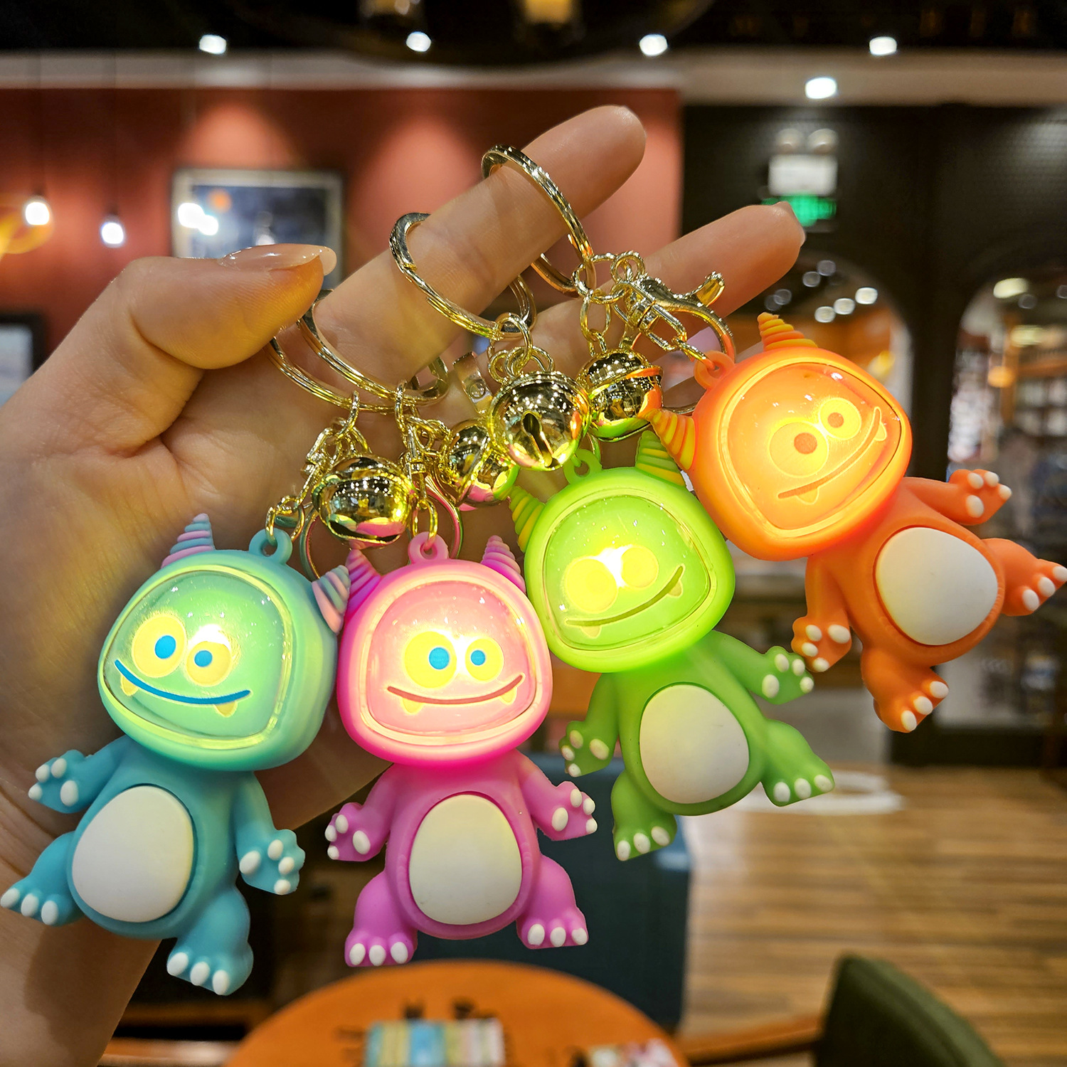 light-emitting dinosaur doll keychain cute cartoon monster schoolbag pendant small night lamp toy small gift