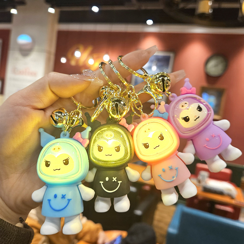 cute flashing light clow m keychain luminous car key chain doll push blind box small gift handbag pendant