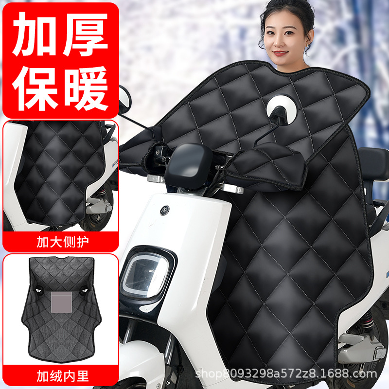 black pu + side wing widened + winter fleece-lined + pocket