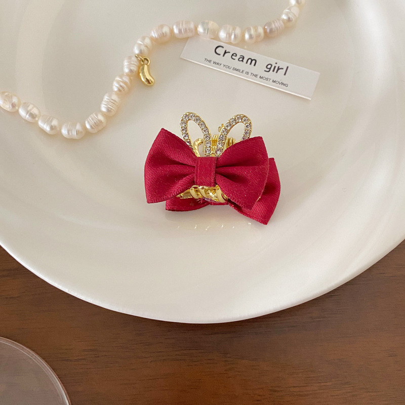 wine red flocking bow small jaw clip