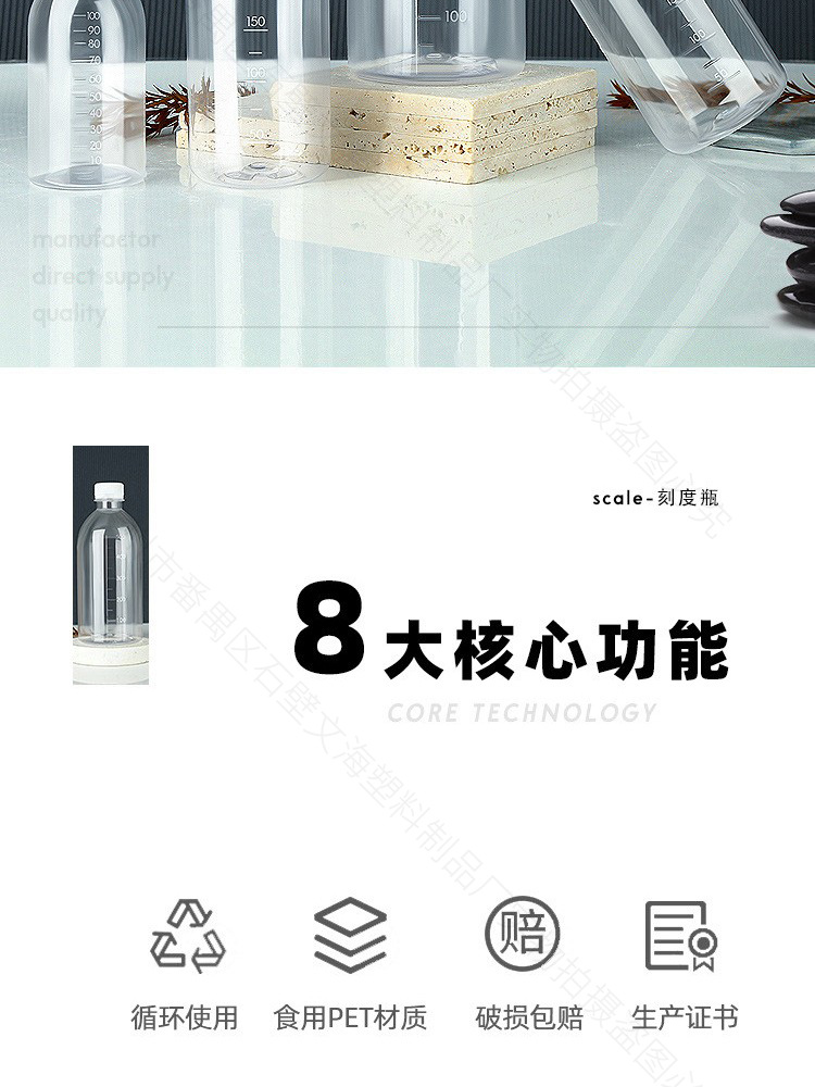 extra thick 500ml graduated bottle * 1/65 shots by box; flip