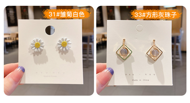 27# white flower stud earrings-silver needle