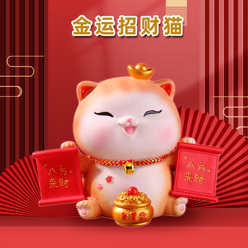 064 large fu character golden lucky cat (skin color)