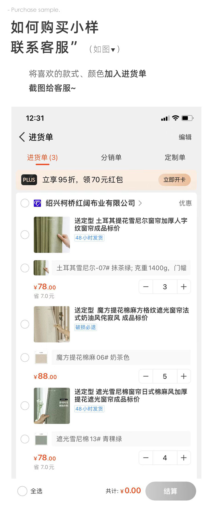 | if you place an order to buy curtains, the sample fee of 10 yuan will be refunded. | CN¥ 12.5 | 351324 piece available |