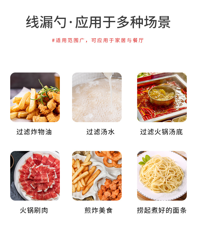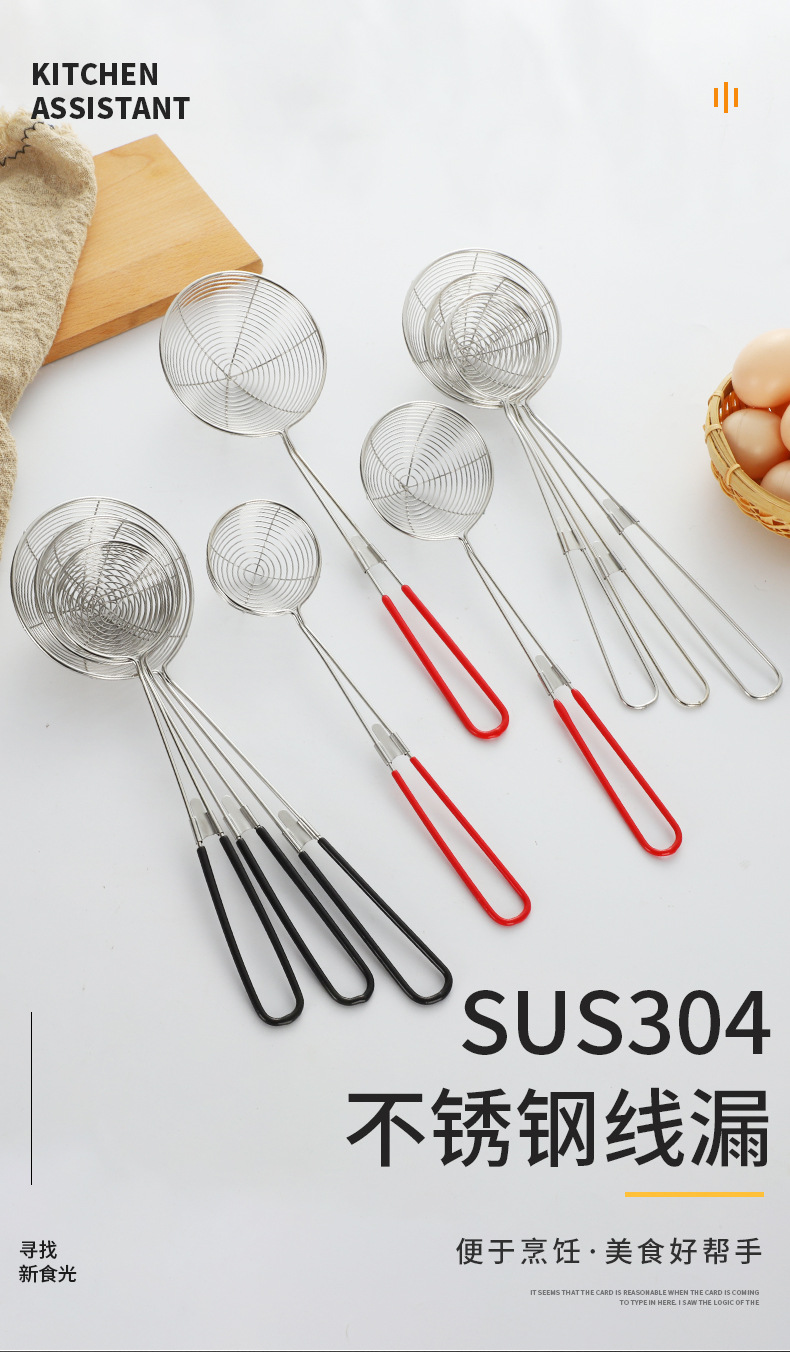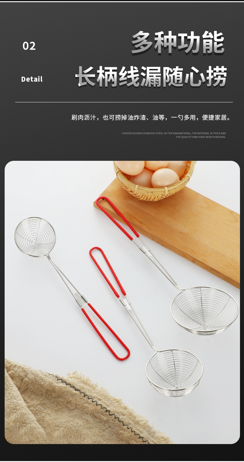 304 stainless steel milk tea small line leakage pearl coconut filter strainer colander domestic hot pot oil grid strainer drain strainer spoon