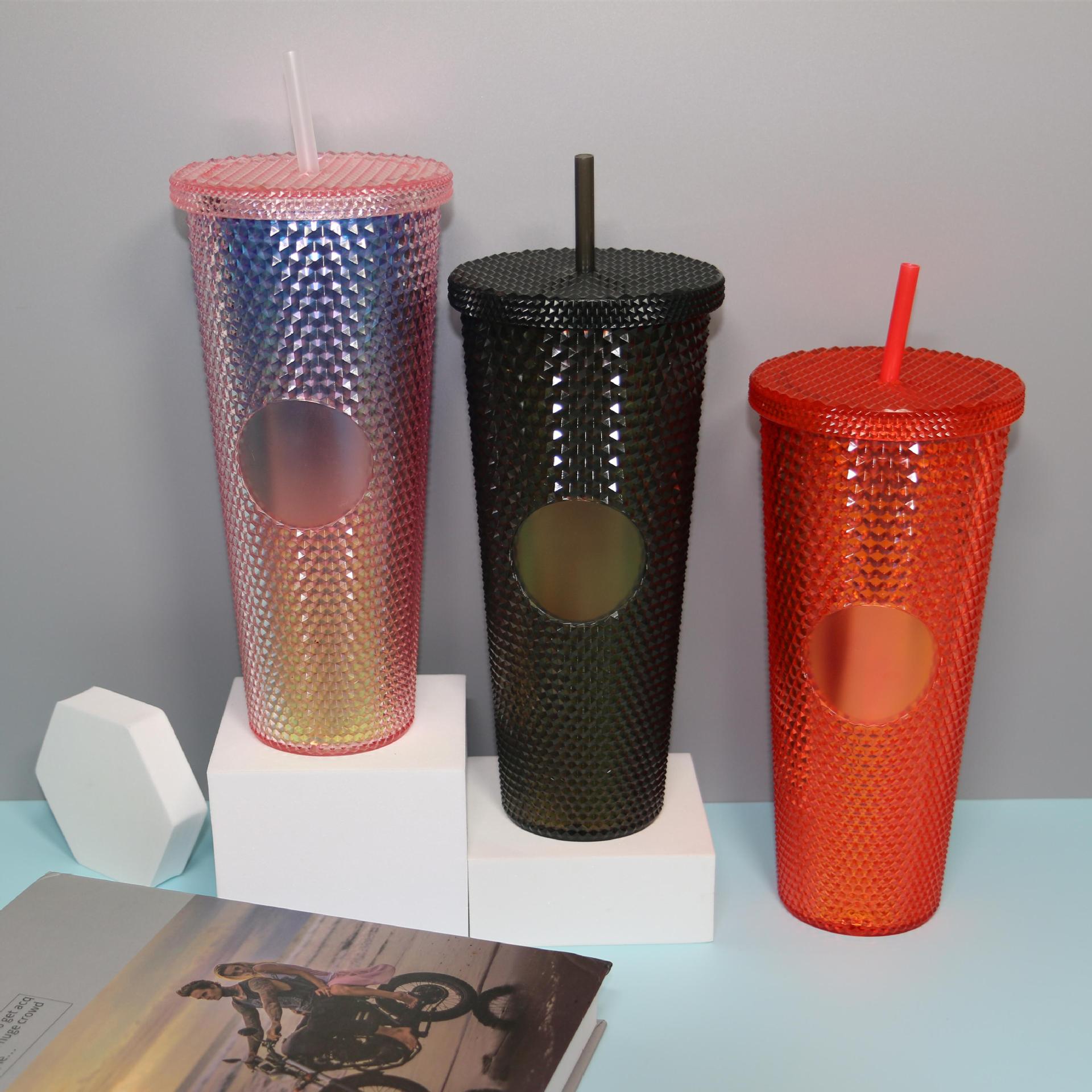 20oz internet celebrity durian cup double-layer heat insulation colorful water cup plastic water cup large capacity party coffee