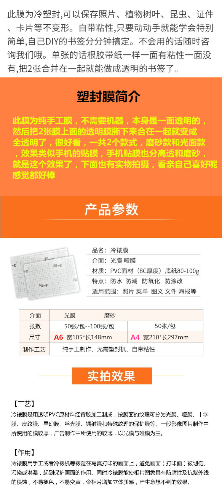 a6 frosted film (50 pieces for 25 transparent specimens)