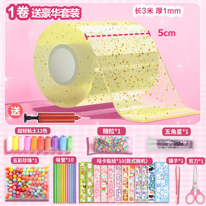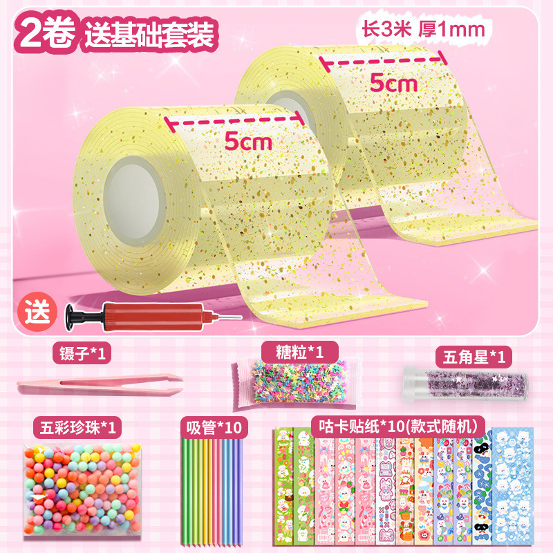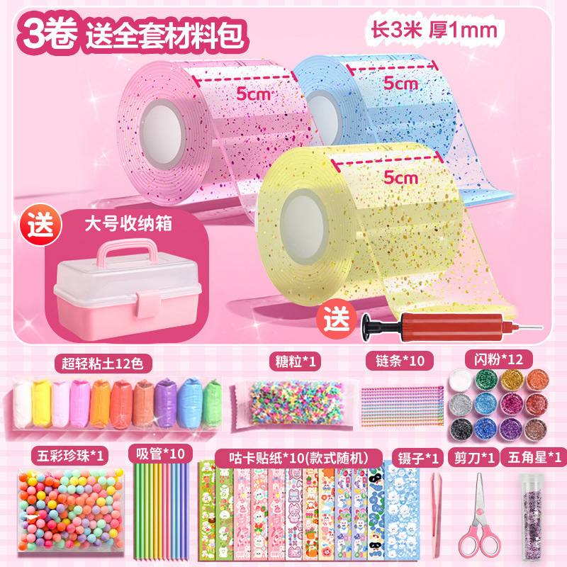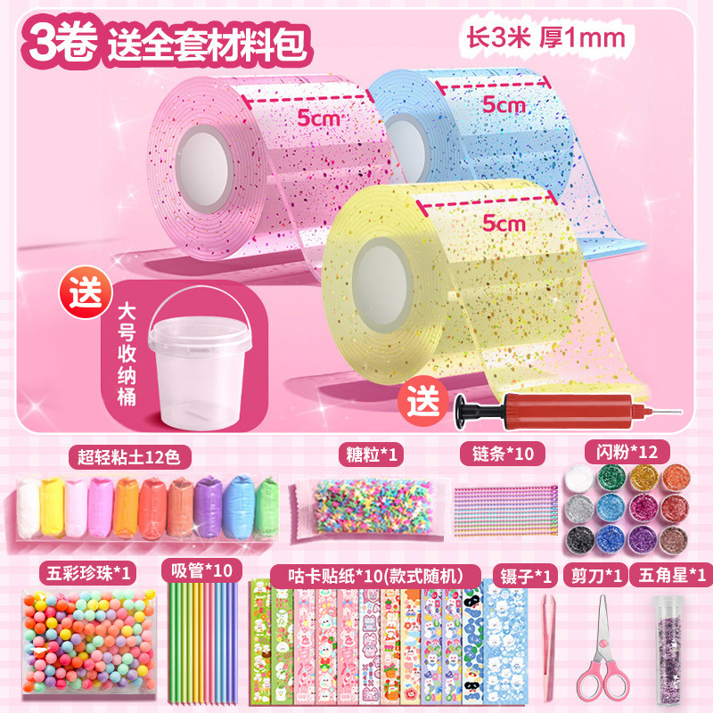 transparent + pink + blue/3 rolls/transparent barrel [5cm nano glue * send complete material package]]