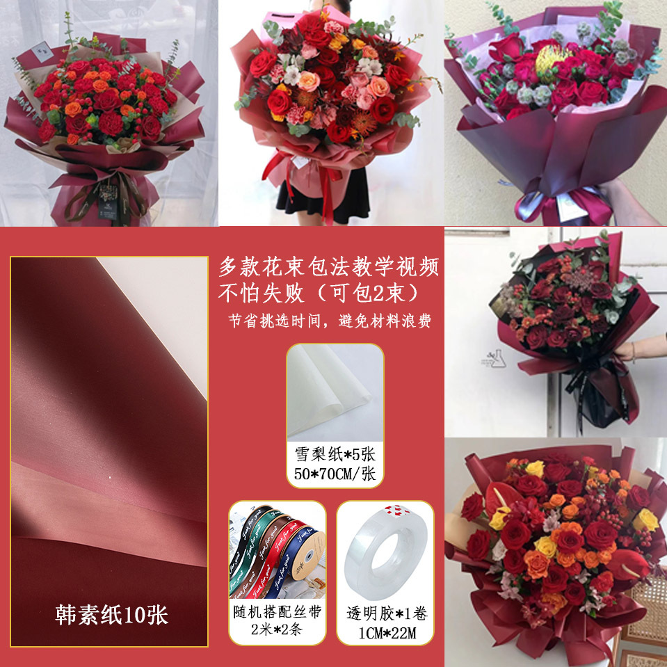 korean plain paper wine red package; korean plain paper size 58 * 58cm
