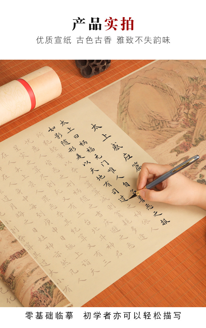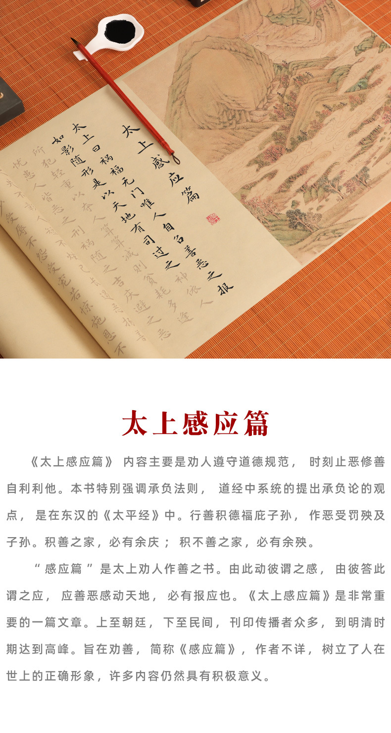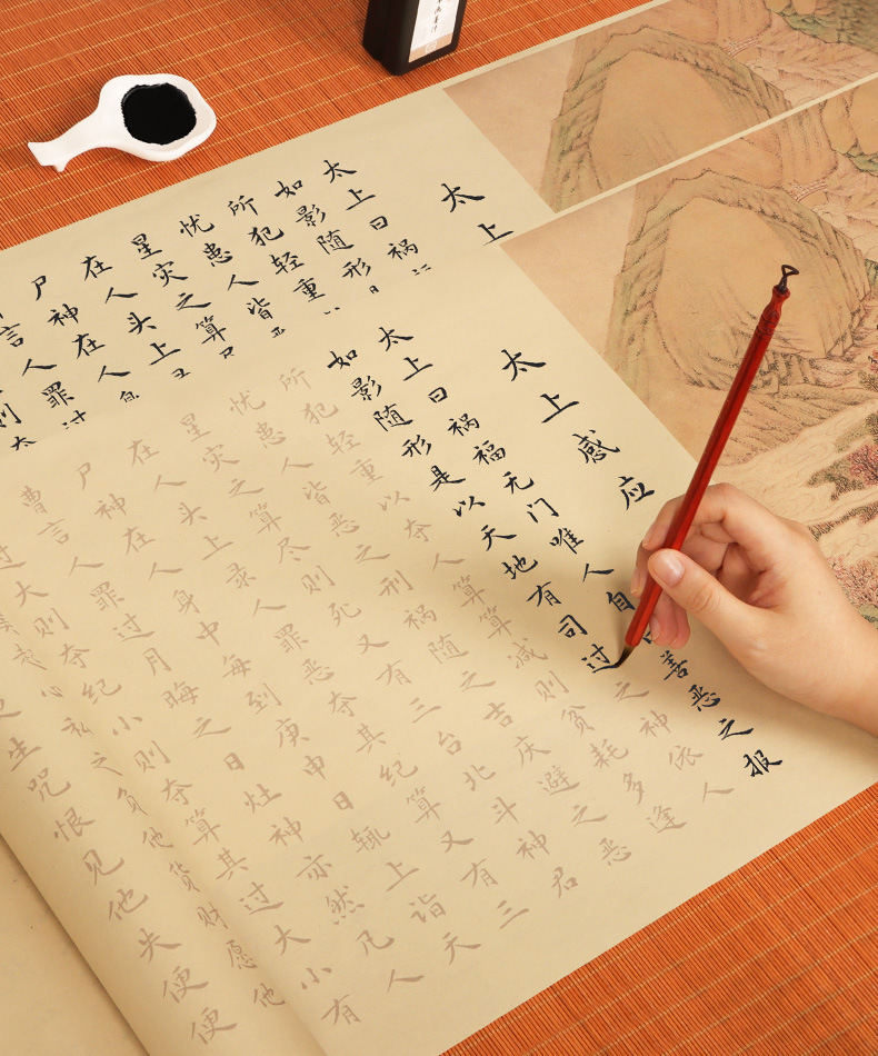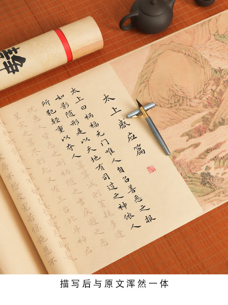 supreme masteron heavenly reward andretribution antique long roll-package b: regular script in small characters writing brush + ink + multifunctional ink plate + felt + storage tube