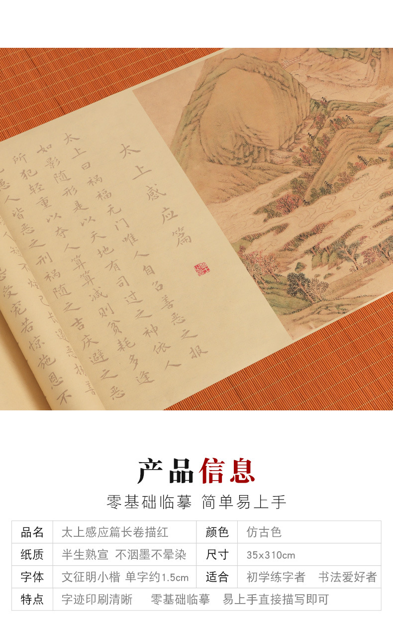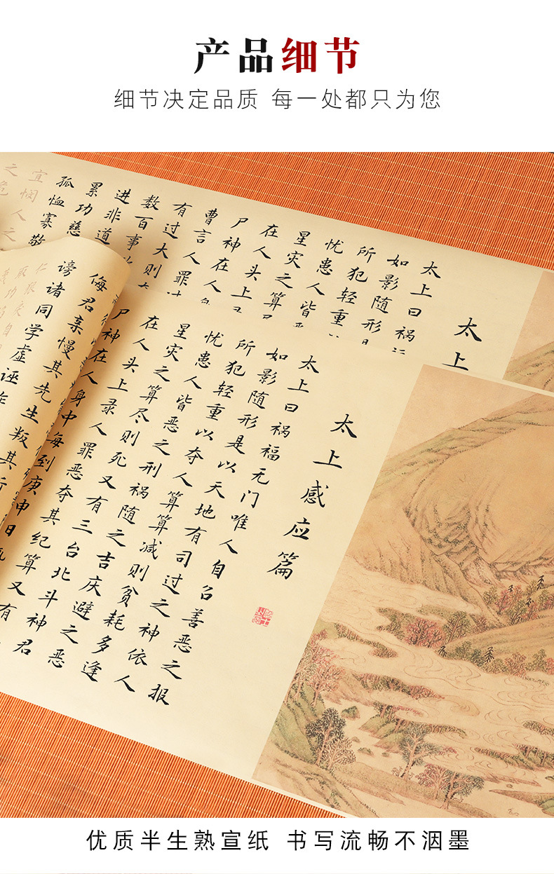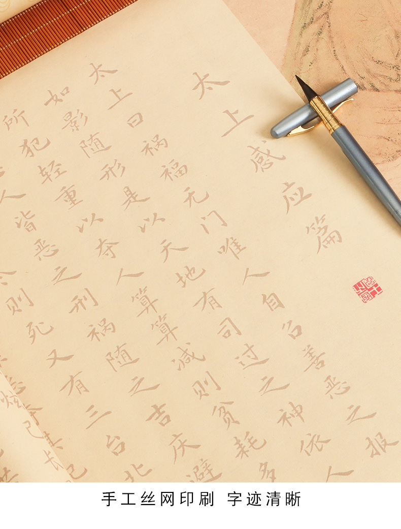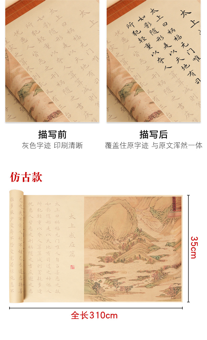 supreme masteron heavenly reward andretribution antique long roll-package b: regular script in small characters writing brush + ink + multifunctional ink plate + felt + storage tube