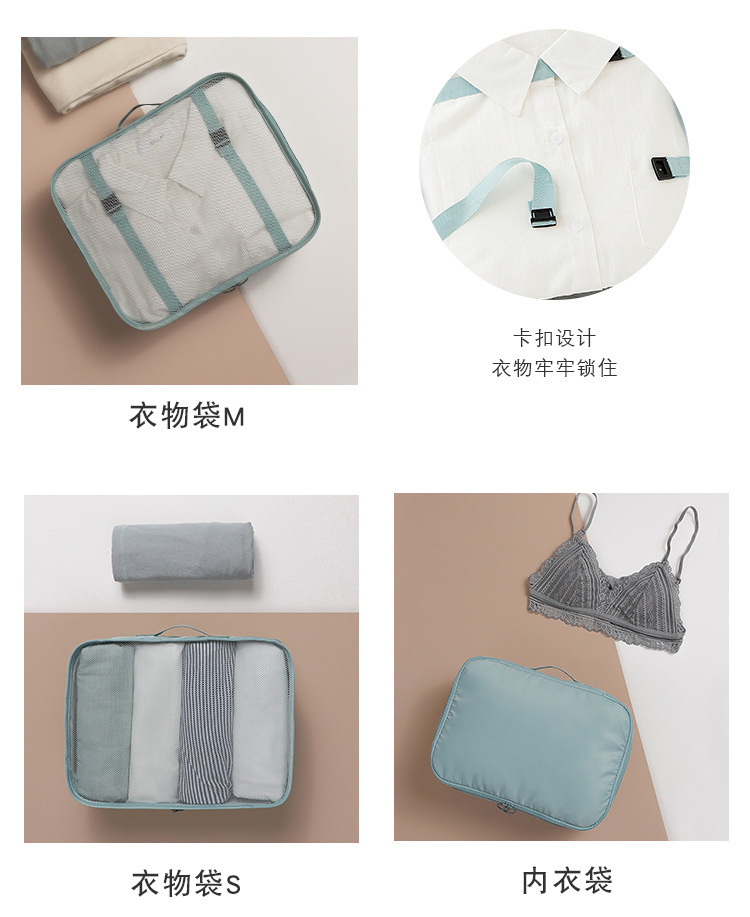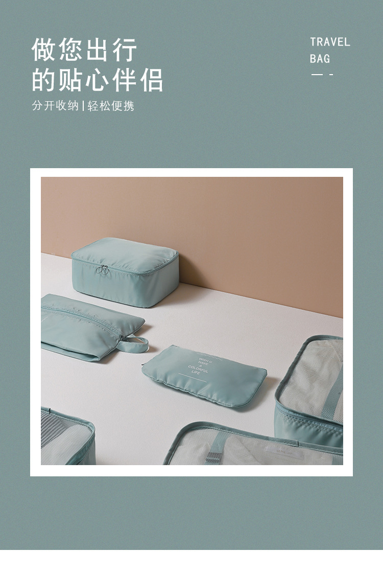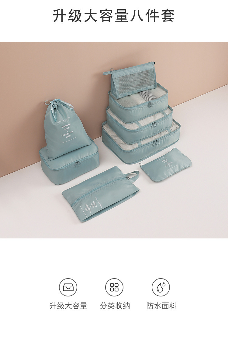 cross-border travel storage bag set eight-piece set makeup washing classification folding organizing bag drawstring