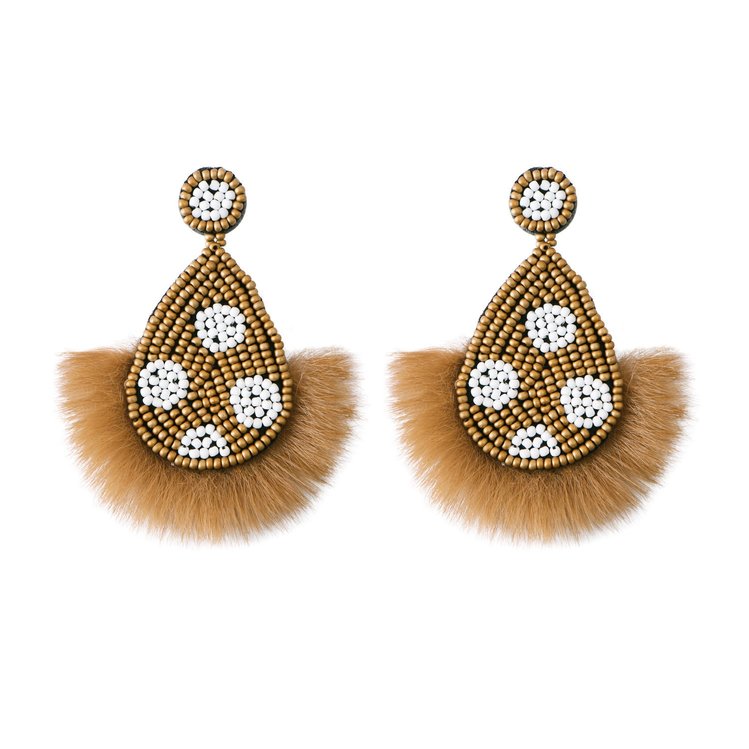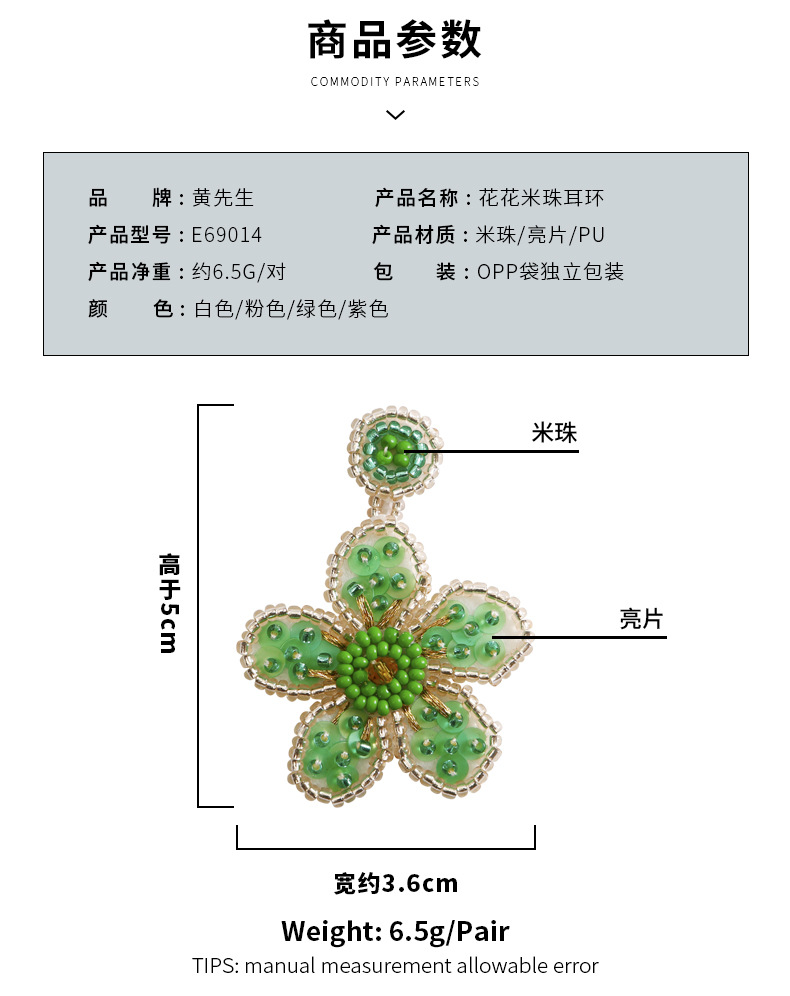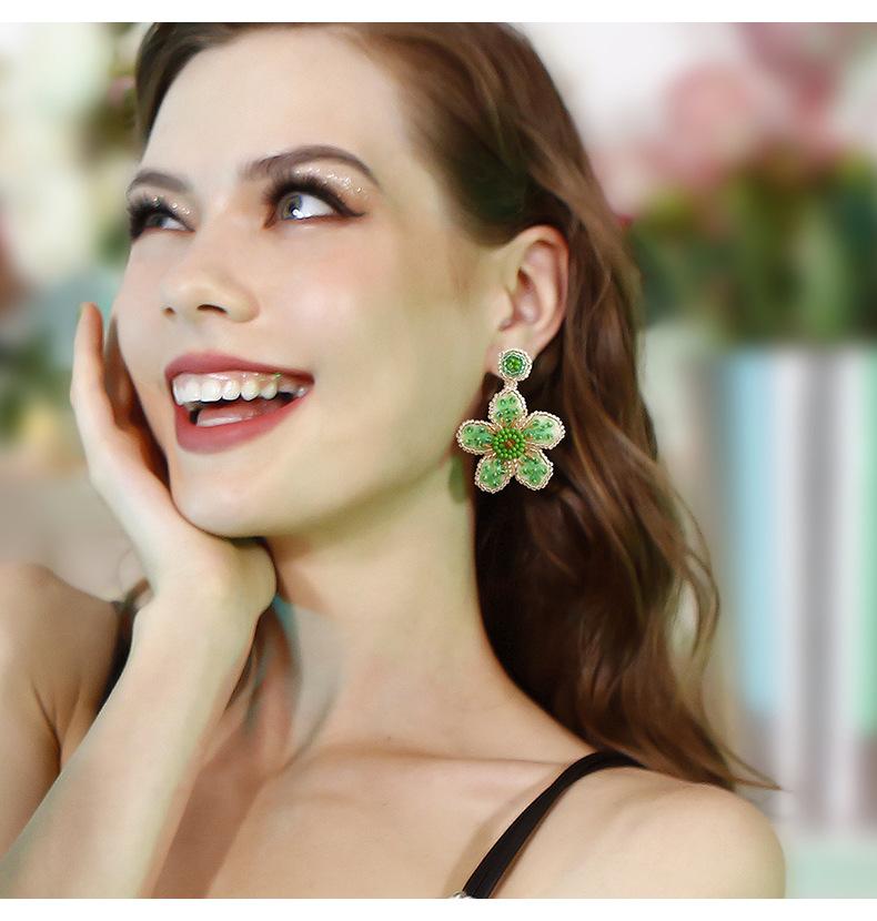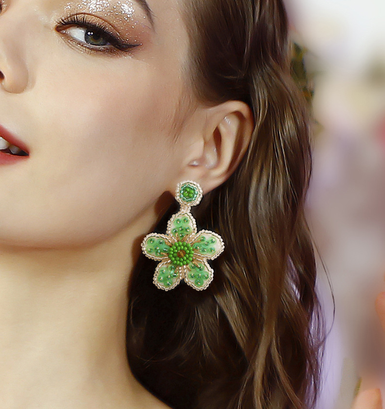 Exaggerated personality retro knitting rice beads earrings, handcrafted DIY wholesale Bohemian beaded charm flower earrings