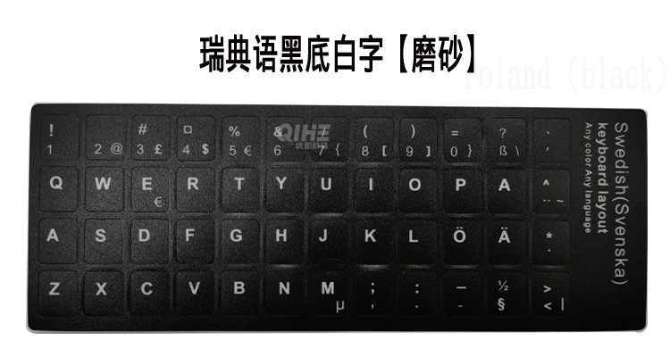 swedish black background with white characters (frosted surface); matte surface