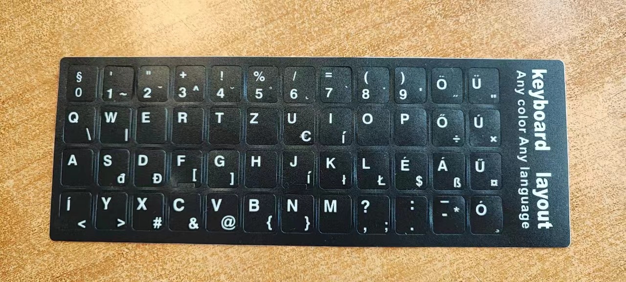 hungarian black background with white characters (frosted surface); matte surface