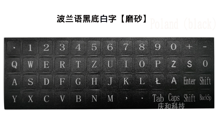 polish black background with white characters (frosted surface); matte surface