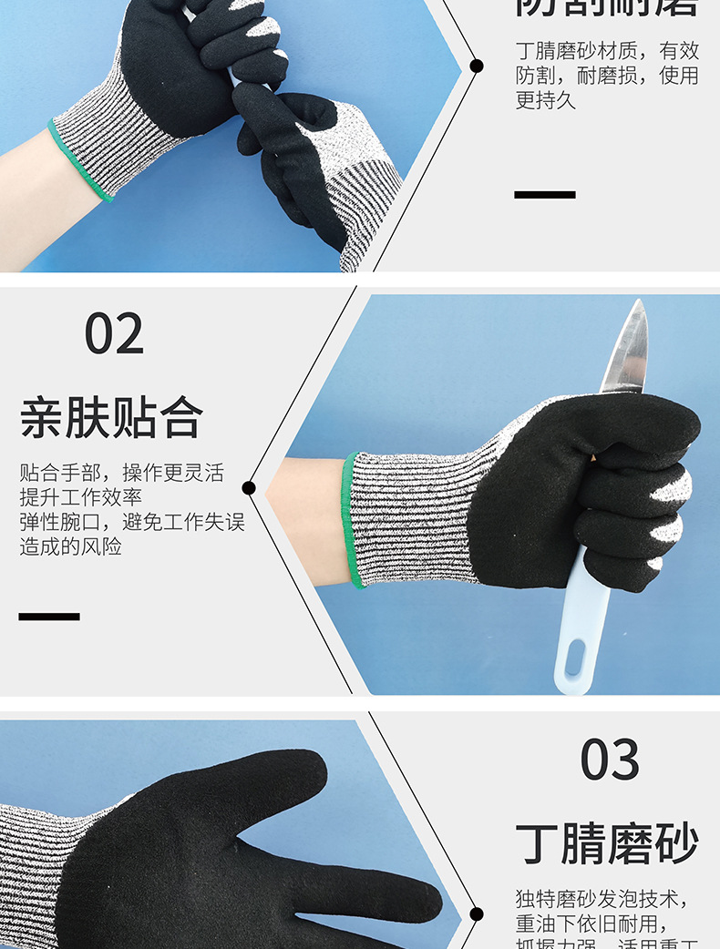 nitrile frosted grade 5 cut resistant gloves m