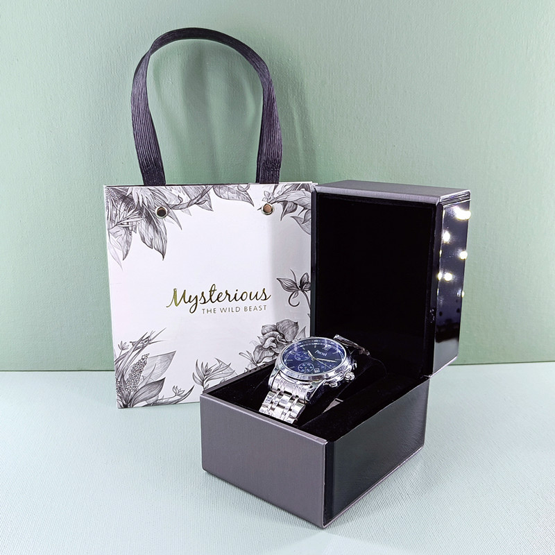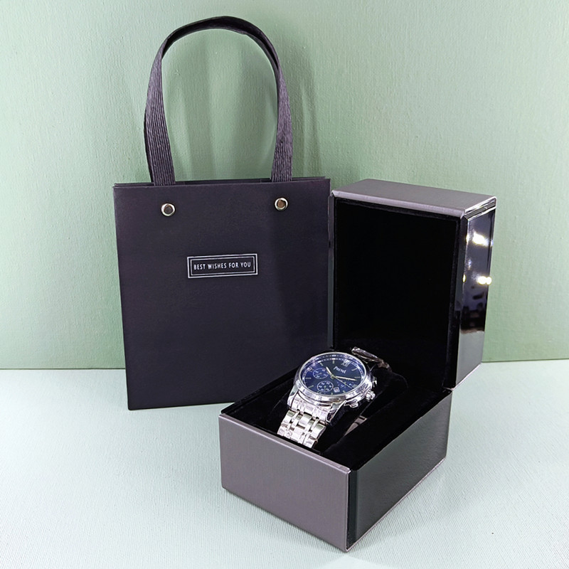 small size black bets handbag 1 + silver gray pu flip mirror watch box 1 * watch box
