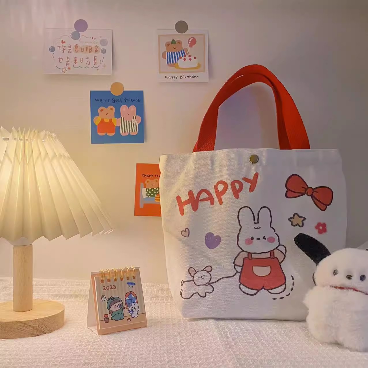 happy rabbit; 27 width * 22 height +10 bottom; canvas material