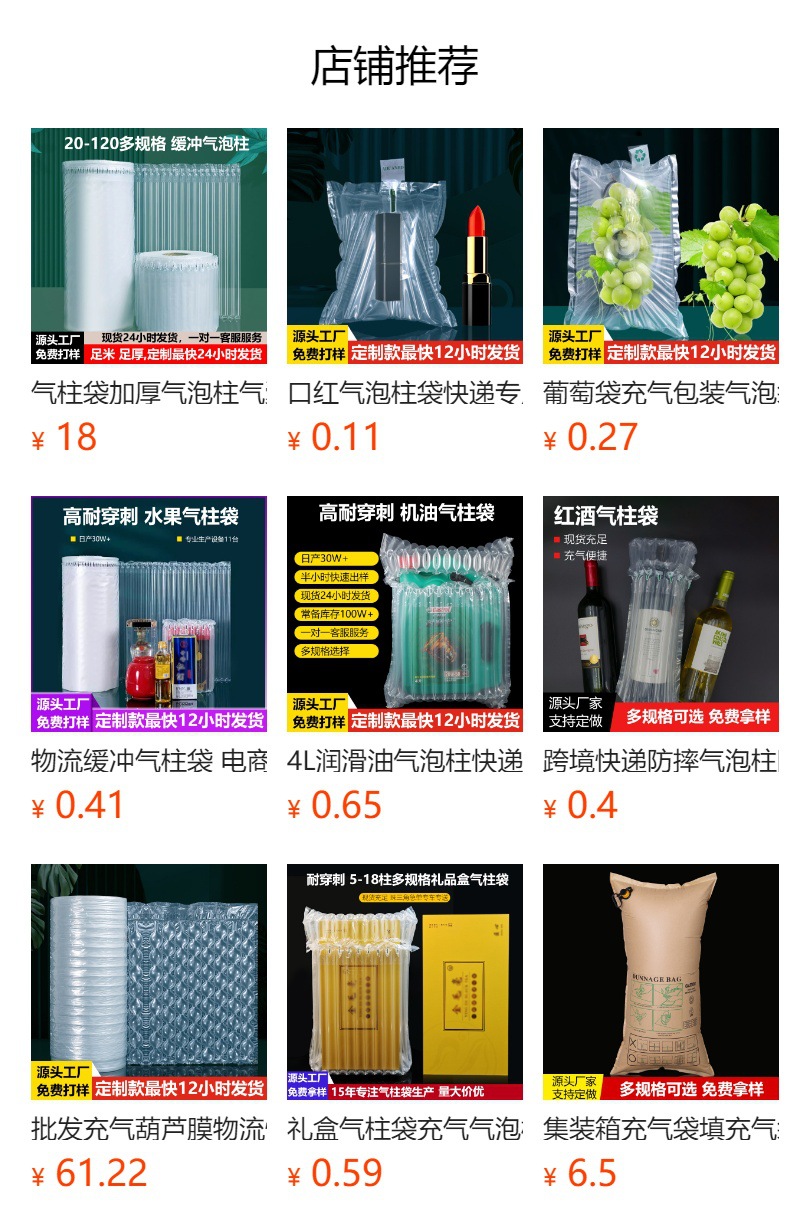 Filling material anti-break bubble column bag express special anti-fall cushioning air column film red wine air column bag shockproof packaging bag