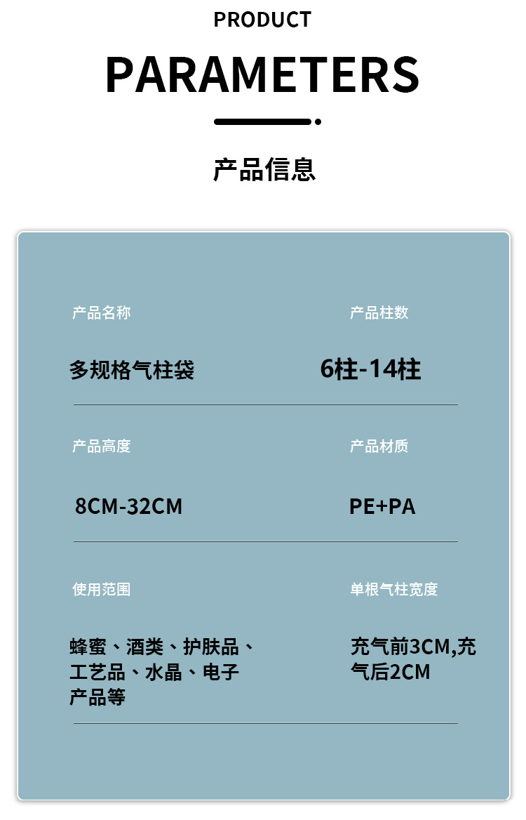 8 columns 15 height (8*6 * 15cm);pa + pe; thickened 5c