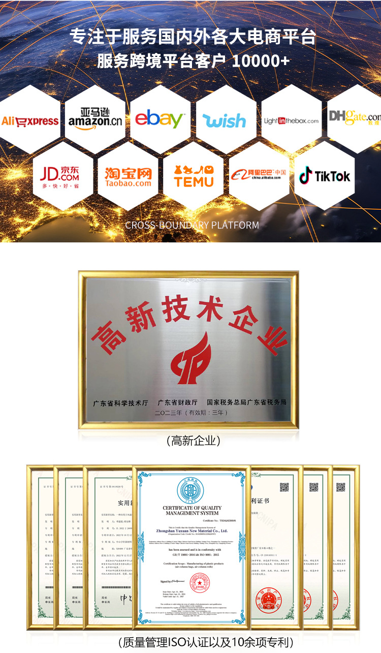 | 10 column 12 height (bottom width 6-8cm);pa + pe; thickened 5c | CN¥ 0.49 | 99249 piece available |