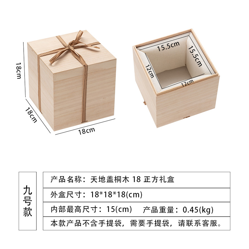 no. 9 18 square gift box [cotton interior]; paulownia lid and base box
