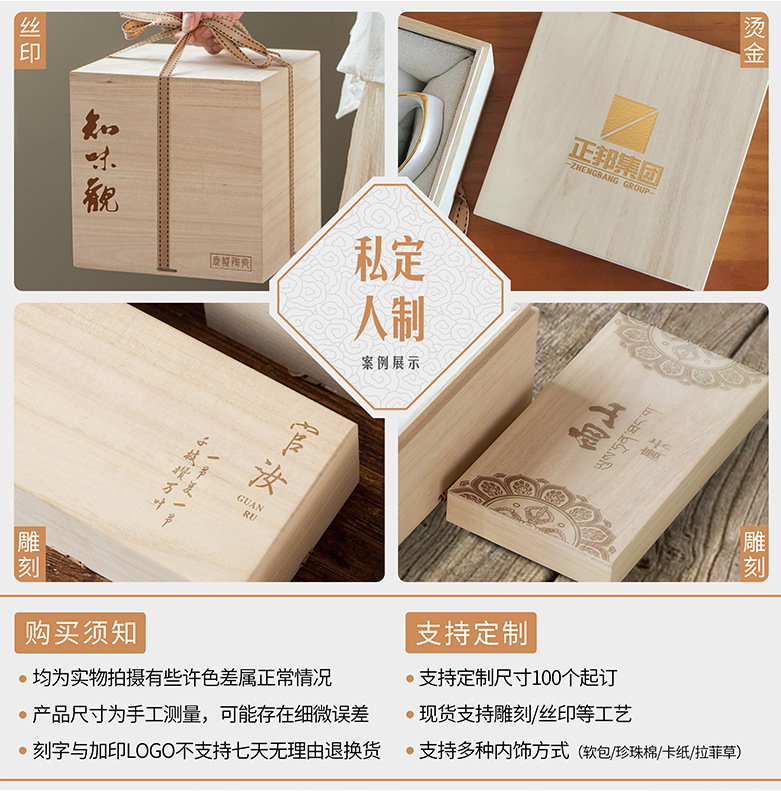 14 th large rectangular gift box [cotton interior]; paulownia lid and base box