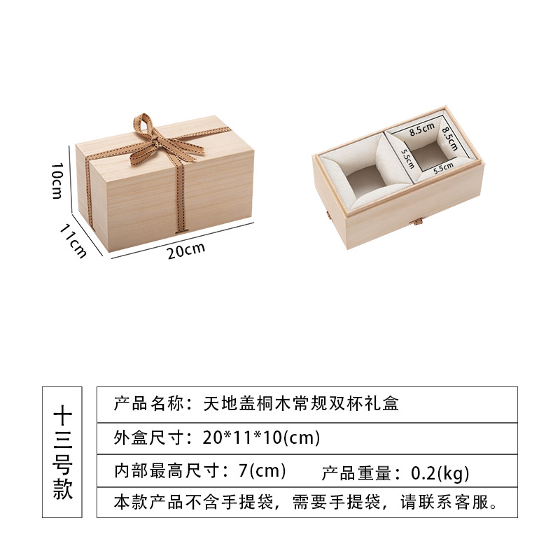 no. 13 regular double cup gift box [cotton interior]; paulownia lid and base box